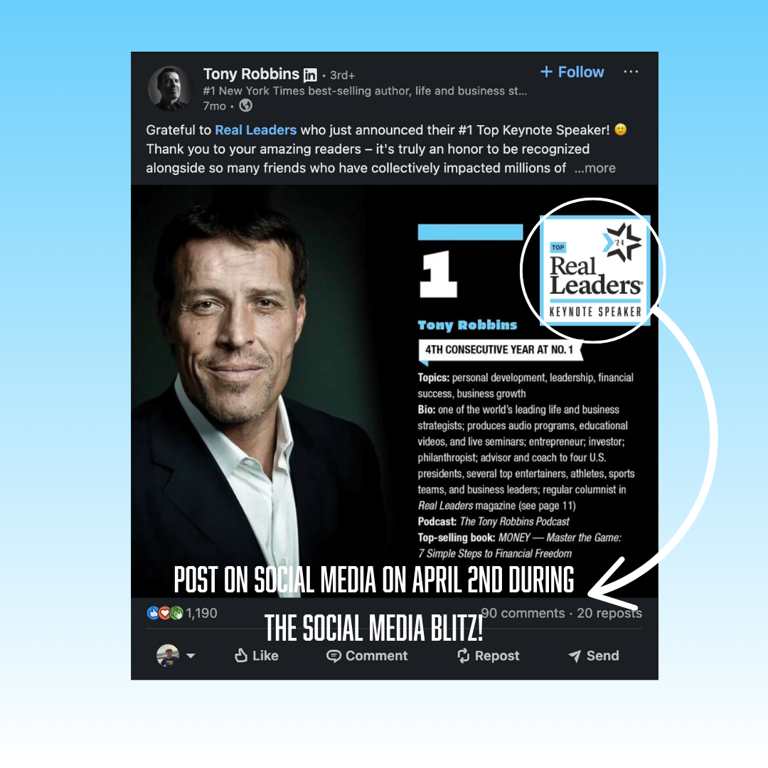 Amplify your impact on April 1, 2025 with the other award winning speakers to take social media by storm using #RealLeaders and #Topkeynotespeaker2025.