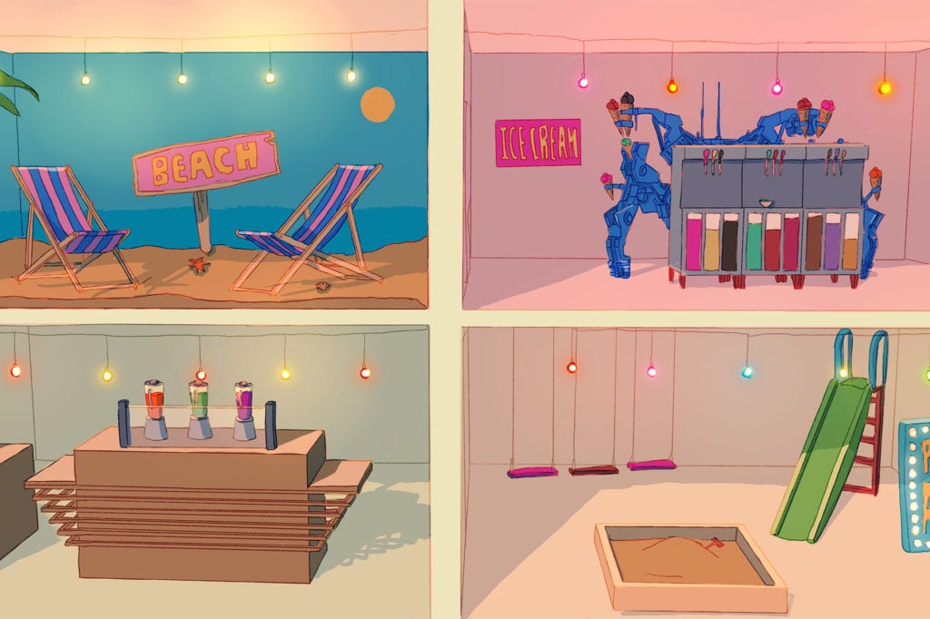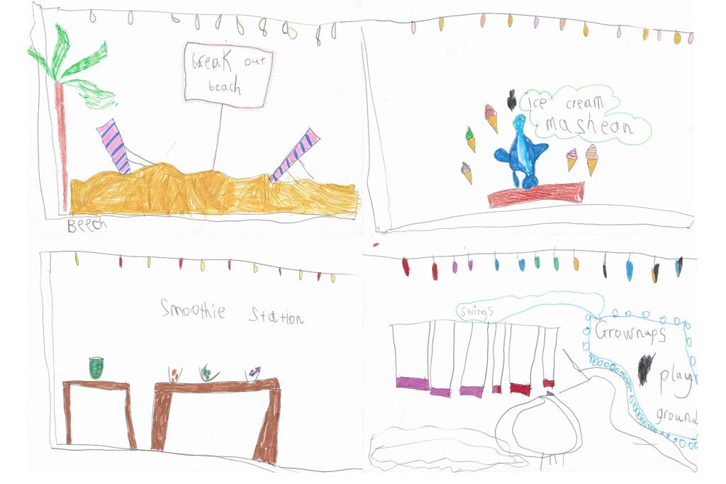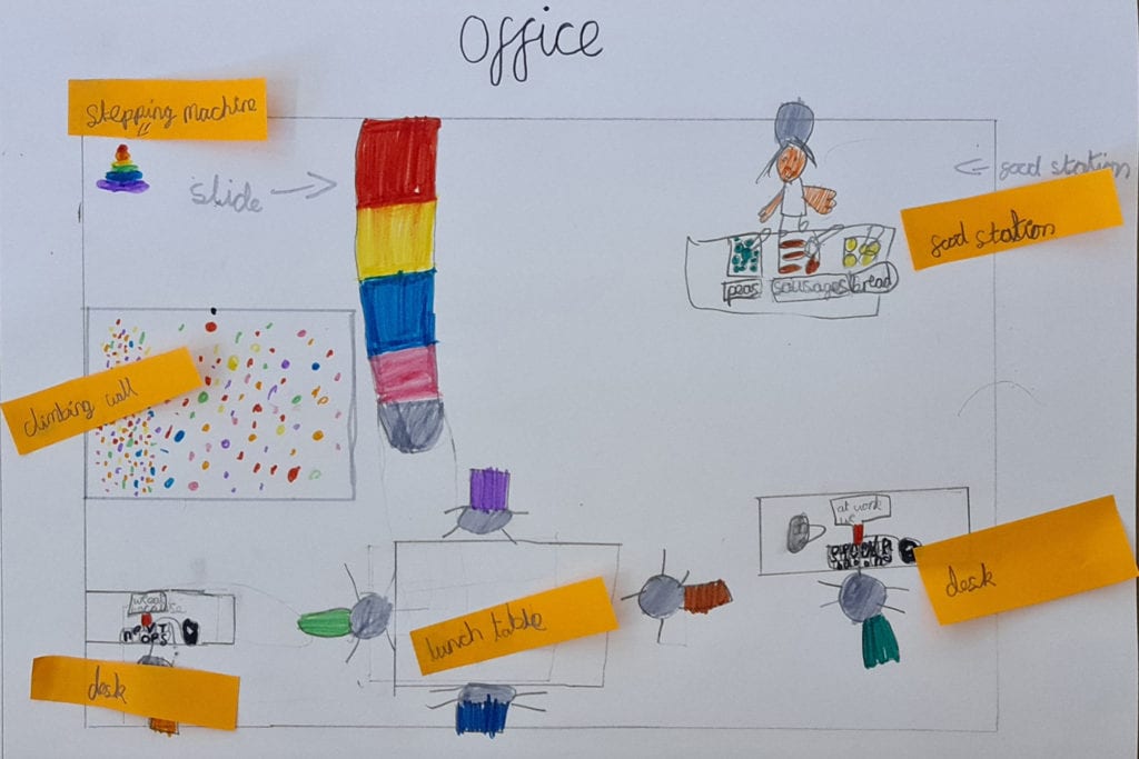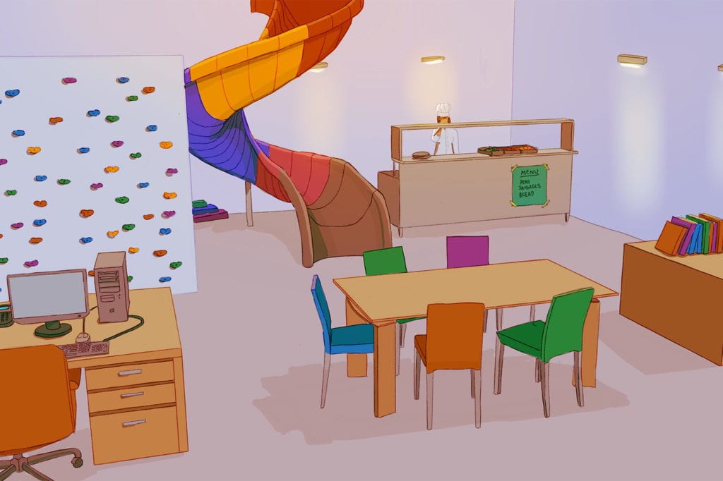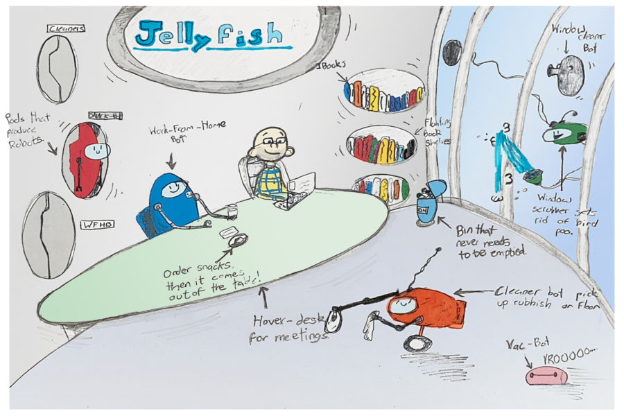 In addition, they asked children what they think offices will be like in the future after COVID-19. They were tasked with drawing their own ideal office and brought the designs to life in the drawings below. From breakout beaches to hover robots, the designs show how children think adults deserve some futuristic fun when offices return to normal.