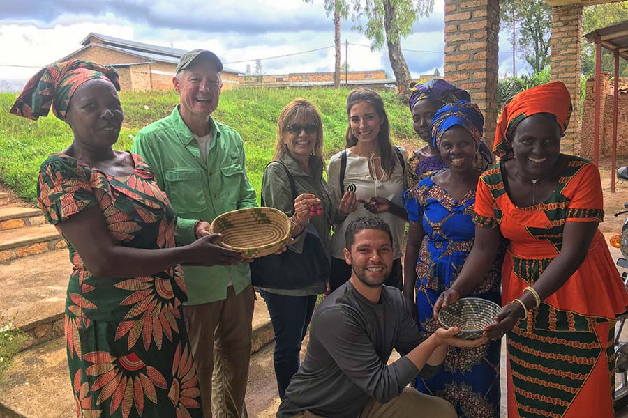 The Cordes Foundation team – Ron, Marty, Steph and Eric – visit a co-op of women artisans in Rwanda. They partner with All Across Africa to make handmade baskets that are sold through Pro Flowers and Costco.