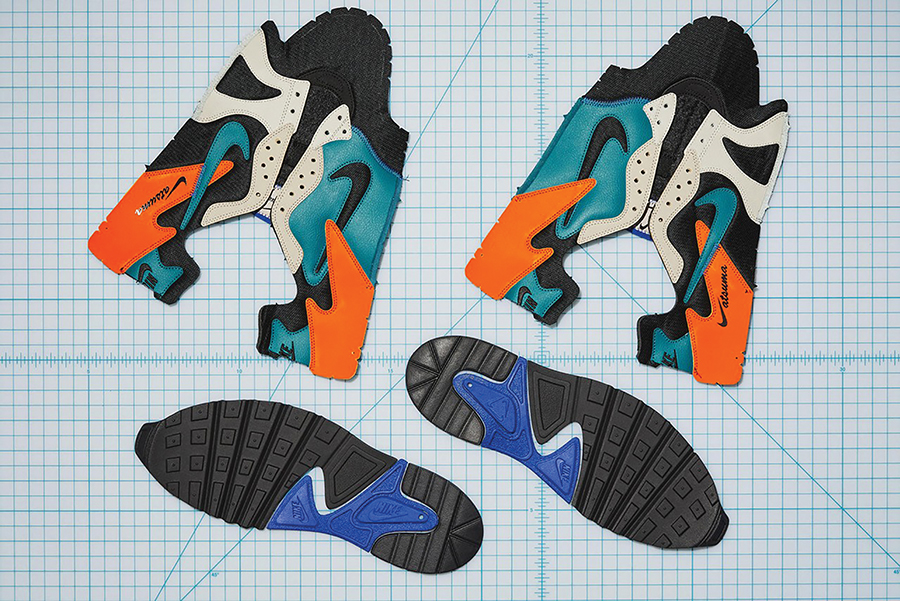 In an effort to reduce its ecological imprint, Nike has created an ingenious way to reduce waste and produce an alluring new running shoe: the Atsuma. The retro-stylized runner aims to rethink traditional cut-and-sew footwear and uses the offcuts from other styles to create a brand new one. Cutting patterns for athletic footwear produces a tremendous amount of material waste, so using offcuts — pieces of material usually discarded when a pattern is cut — has created an exercise in sustainability and a new aesthetic that highlights negative space. This rethink on how shoes are made has inspired innovation within Nike’s production lines and created a striking new shoe.