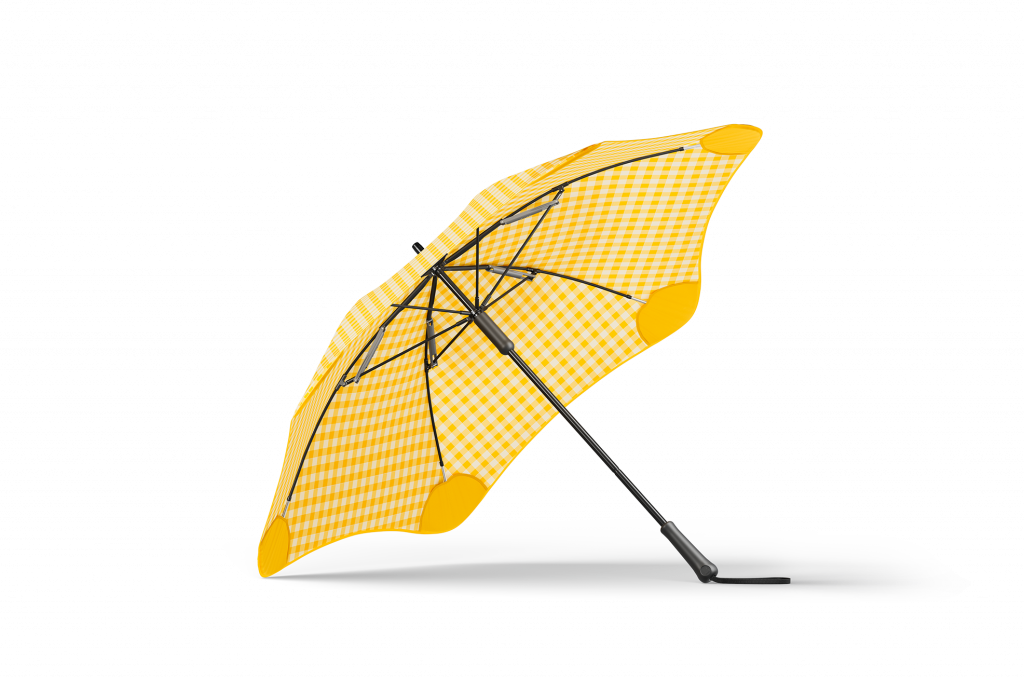Blunt, a Certified B Corp, is committed to durability and prioritizing repair over replacement by designing products to withstand the test of time and the harshest weather. Each Blunt umbrella is hand-stitched with patented tips that evenly distribute tension across the canopy, ensuring strength and reliability in any storm. With a vision to reduce waste going to landfills, the umbrellas are modular for easy repair and maintenance. Umbrella repairs take place in multiple workshops around the globe, but Blunt encourages and assists customers in doing any needed repairs at home. The Metro is pictured in Lemon & Honey.
