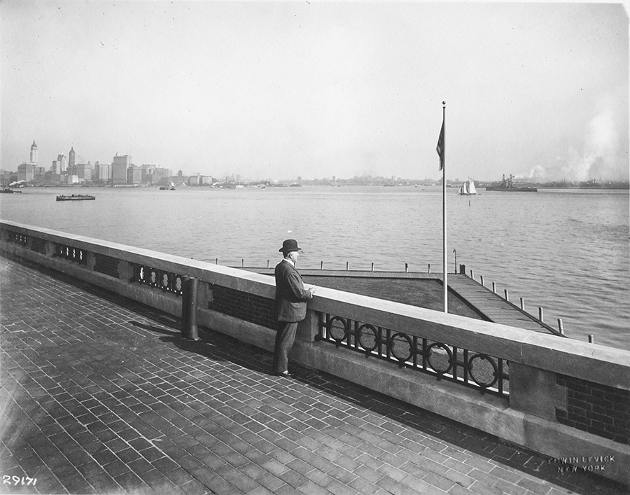 William Williams, Commissioner of Immigration at Ellis Island form 1902-5 and 1909-13, from whose estate these photographs came. The New York skyline, showing the nearly-completed Woolworth Building tower, is at the left.