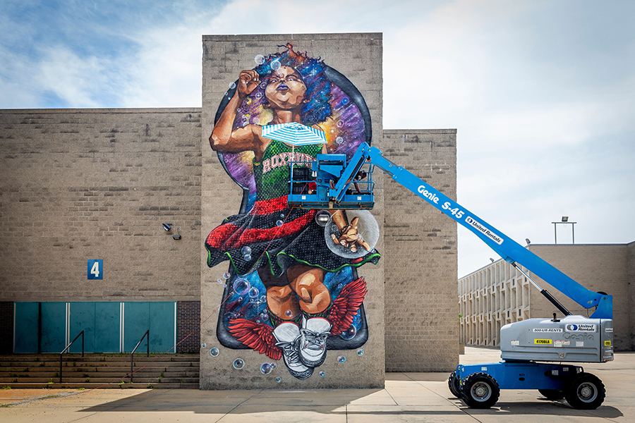 “Growing up during the golden age of hip-hop, I spent a lot of time venturing between the Lenox Street apartments and the Orchard Park projects of Roxbury,” says Gibbs. “I came across graffiti, which was often labeled as vandalism. To me, it was clear that graffiti was an art form that had the power to convey culture, history, and knowledge. It became my mission to transform Boston’s streets with graffiti art — an art form that is frequently criminalized, undervalued, and misrepresented in mainstream culture. I hope to continue to find new ways to innovate my craft and to mentor others in the art form that changed my life.”