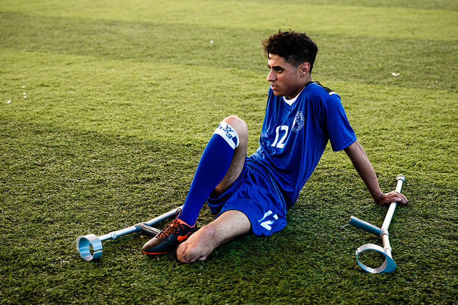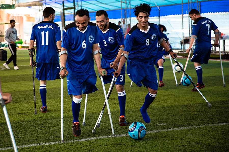 Omar was 19 when he lost his leg after a bullet tore through it on May 14, 2018, the worst day in a series of border demonstrations in Gaza. Today, following months of suffering from physical pain and psychological trauma, Omar is sending a ball across the football field with great force and determination.