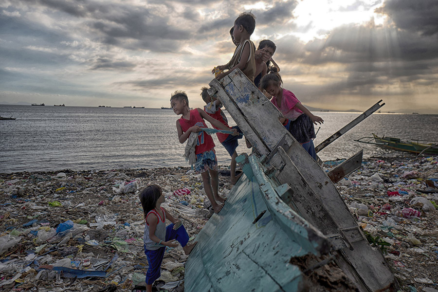 Children play on a beach filled with plastic waste in Manila, Philippines. The Philippines has been ranked third on the list of the world’s top-five plastic polluters of our oceans, after China and Indonesia. Many organizations and businesses have found ways (big and small) to help end plastic pollution and change people’s attitudes and behavior about their consumption and the impact it has on the environment. Over a million people have reportedly signed petitions worldwide, demanding that corporations reduce their production of single-use plastics. Without established recycling facilities, rapidly developing countries create mountains of disposable packaging like food-wrapping, sachets, and shopping bags that end up on coastlines after being discarded.