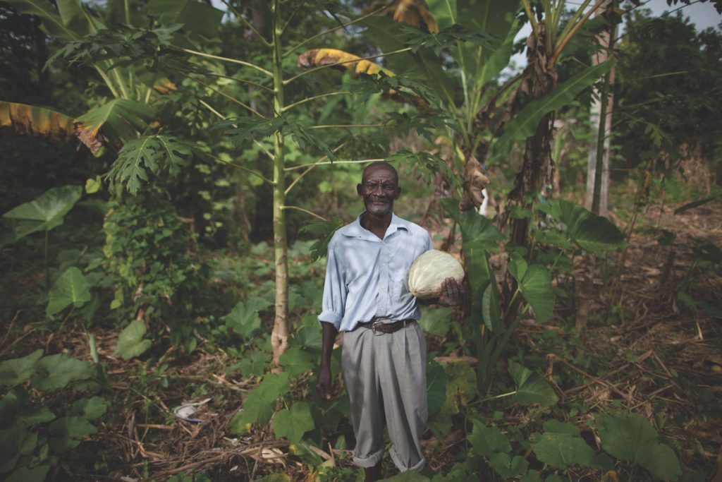 Rucial Colas, a member of a local peasant association in Haiti, diversified his agroecological farm plot with a variety of fruits and vegetables including squash.