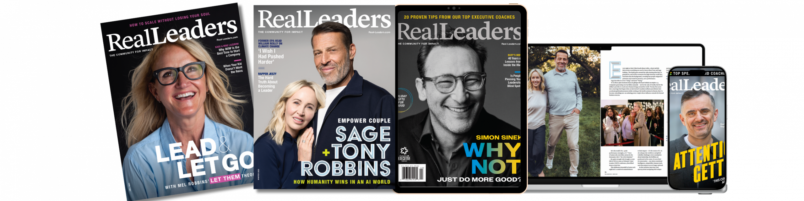 Subscribe Real Leaders to receive a quarterly print magazine, full digital access to our archive, and invitations to curated leadership events. Built by leaders for leaders, Real Leaders delivers practical playbooks, candid interviews, and proven frameworks from authentic CEOs who measure success by people, planet, and profit.