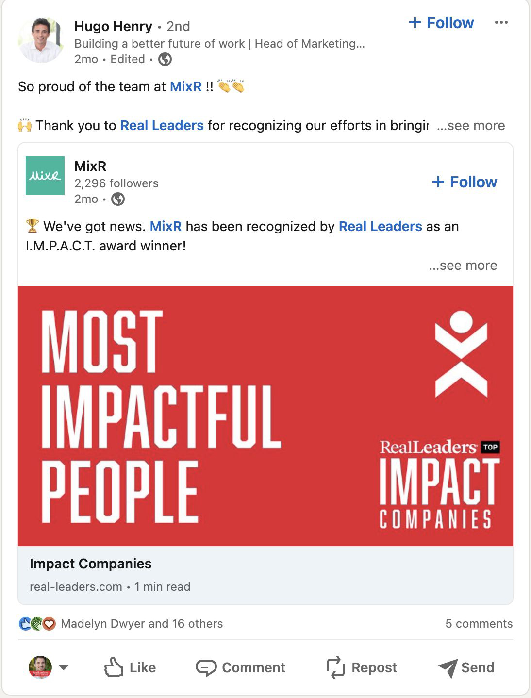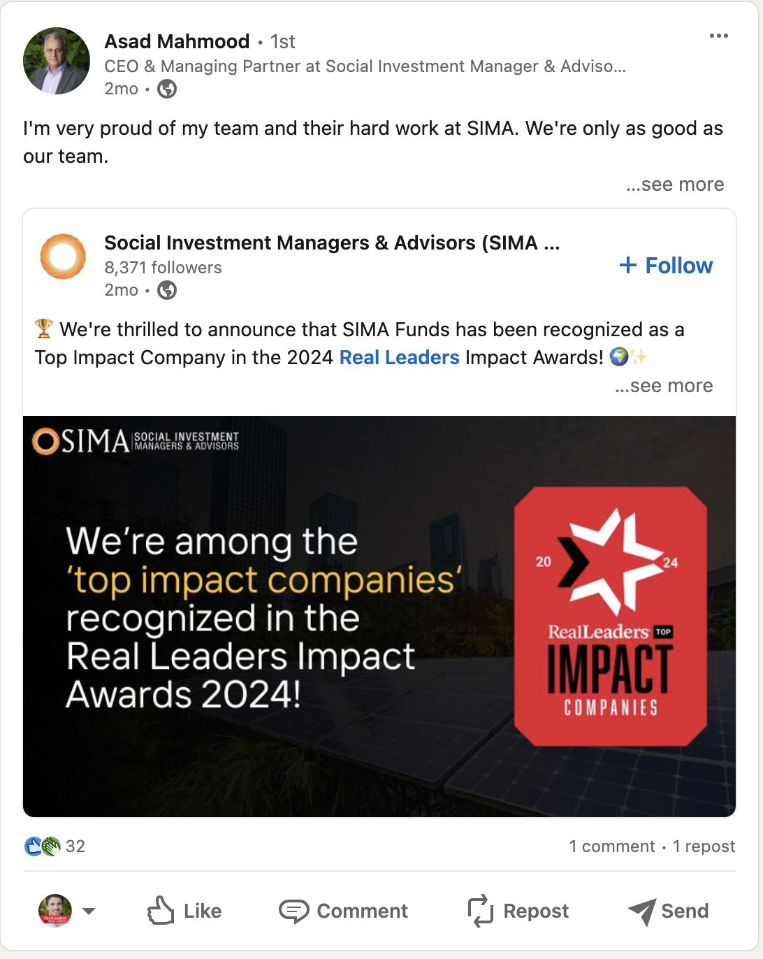 Break news with the entire impact community that you have won a 2026 Real Leaders Impact Award.